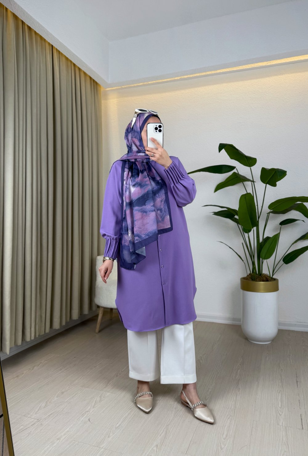 Kol uçları drape detaylıdır ve düğmelidir