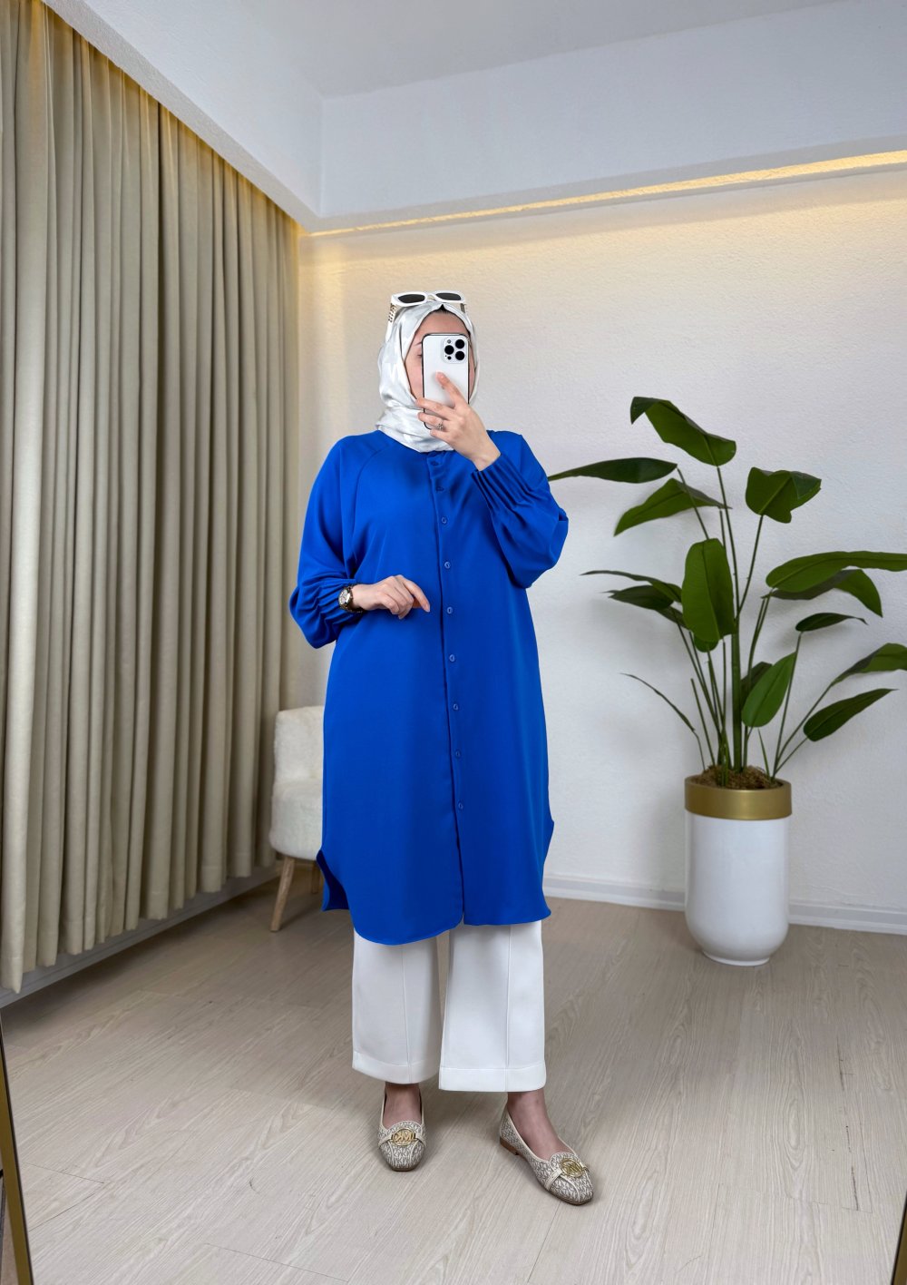 Kol uçları drape detaylıdır ve düğmelidir