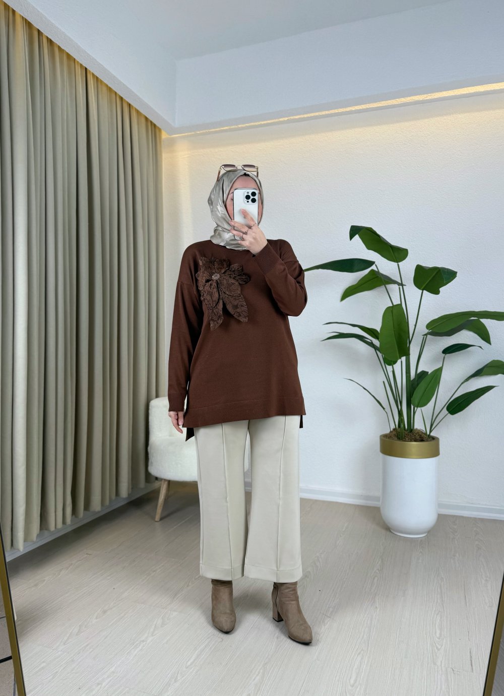 Yakasında Brokar kumaştan çiçek detayları mevcuttur