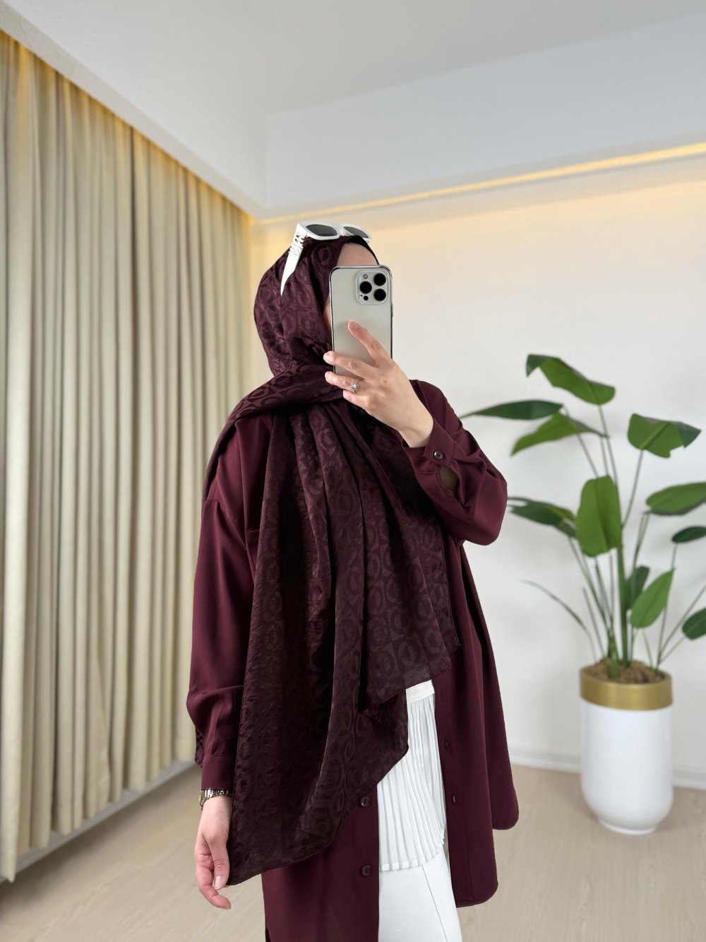 Halka Desen Şal Bordo