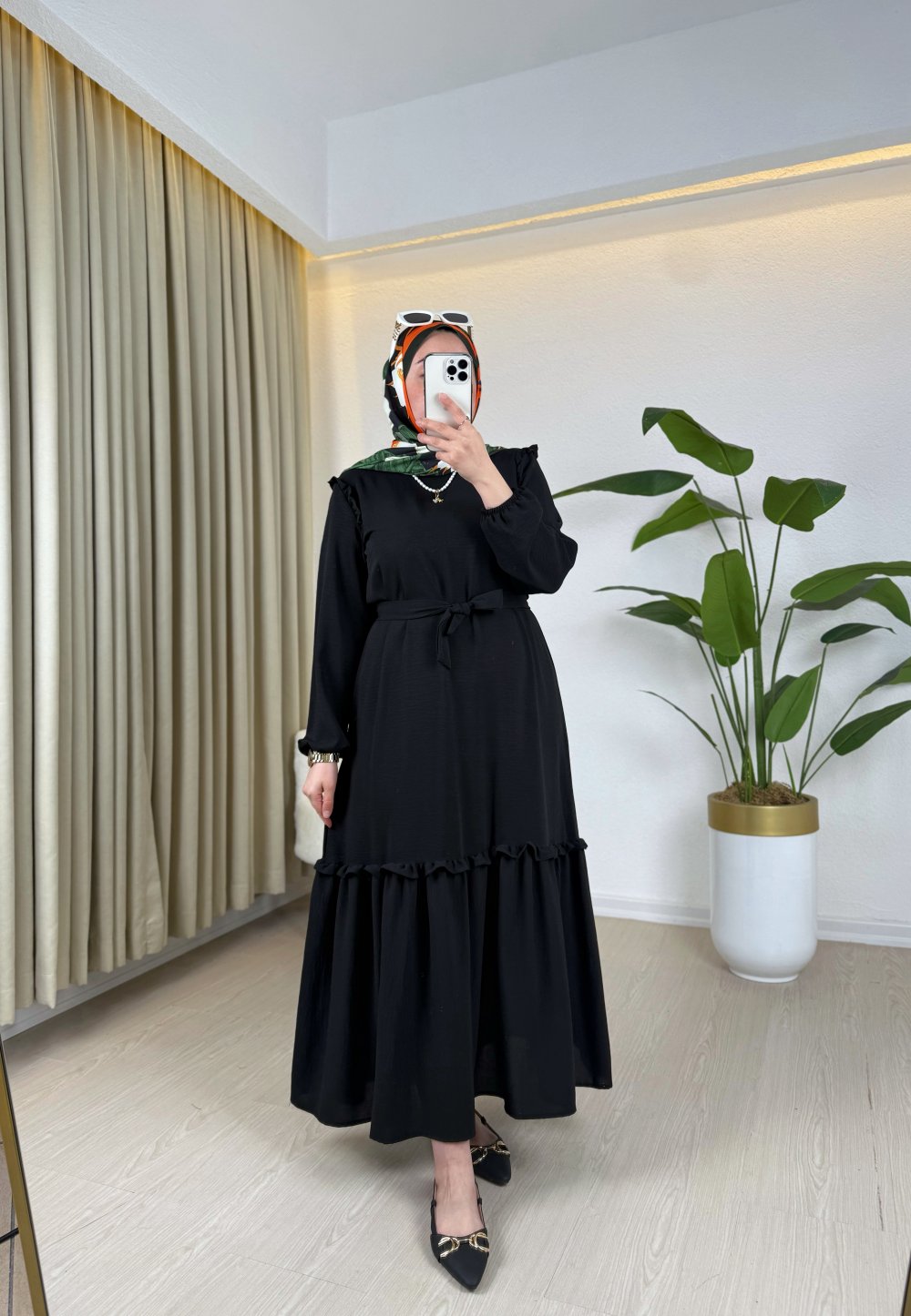 Omzunda ve eteğinde fırfır detayları mevcuttur