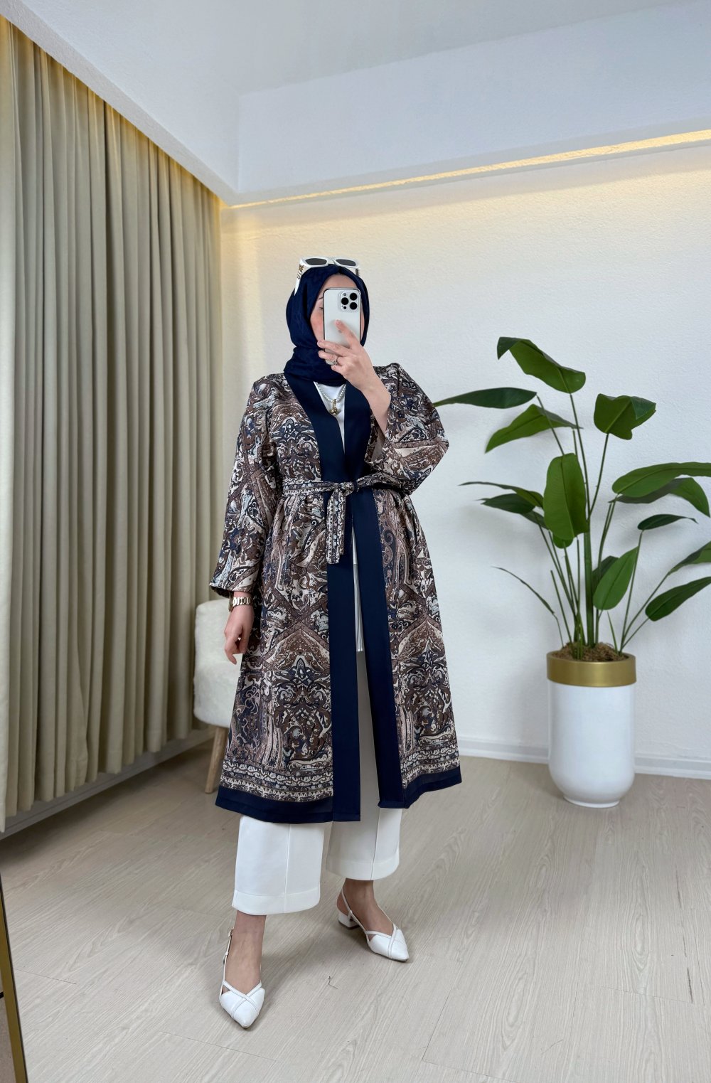 Mine Desenli Kimono Lacivert